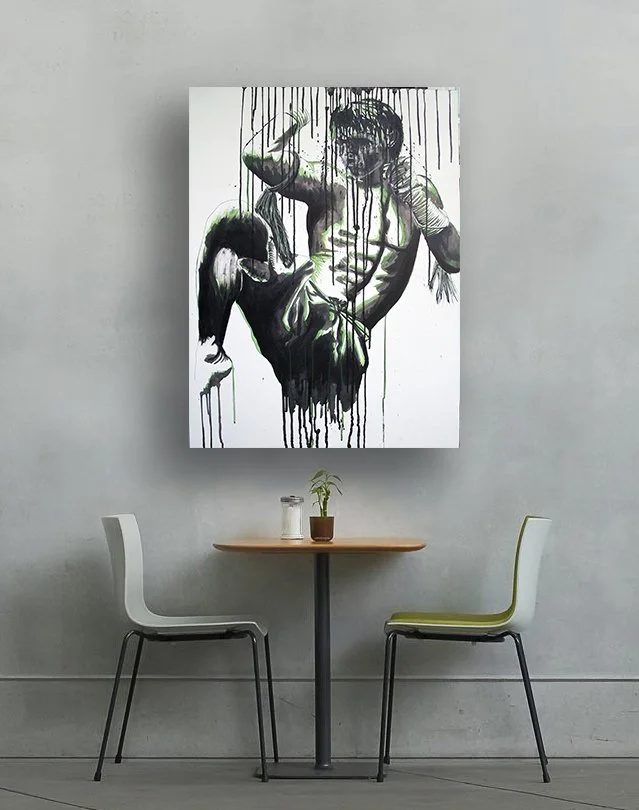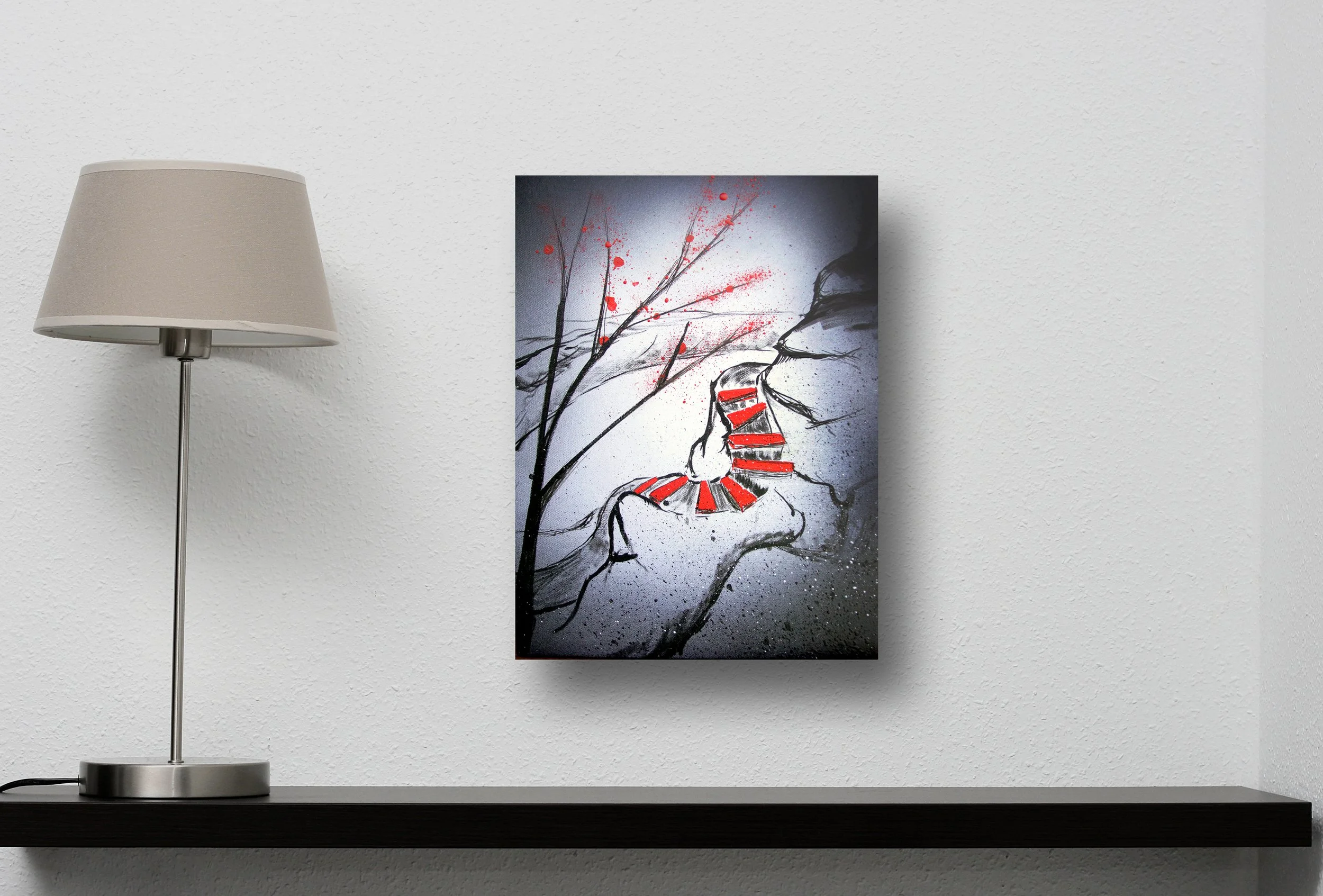 Les sketchs minimalistes explorent la fusion entre l’acrylique et l’illustration. Les fonds réalisés au spray servent à concentrer l’attention sur les esquisses à l’encre acrylique, inspirées par l'esthétique japonaise.
