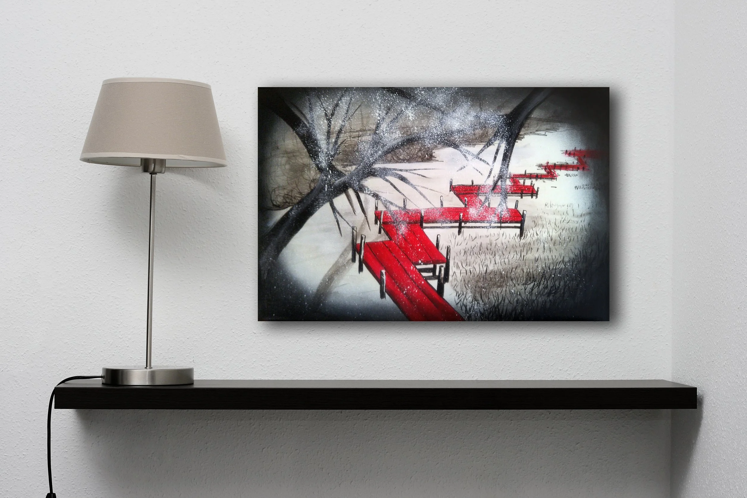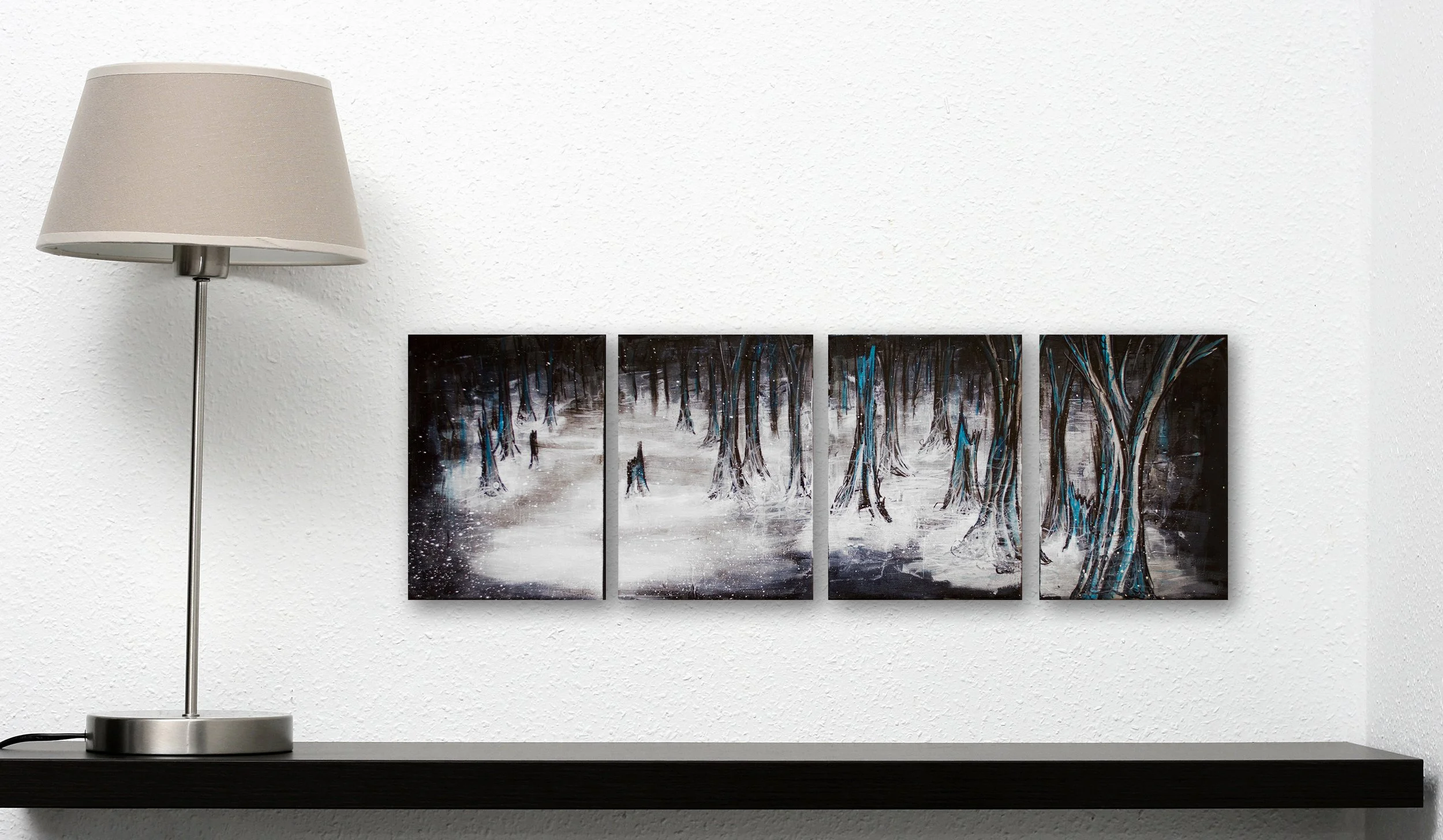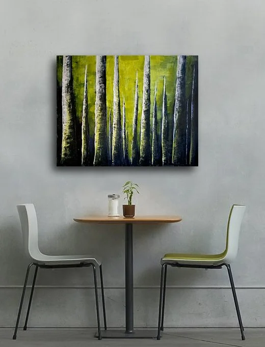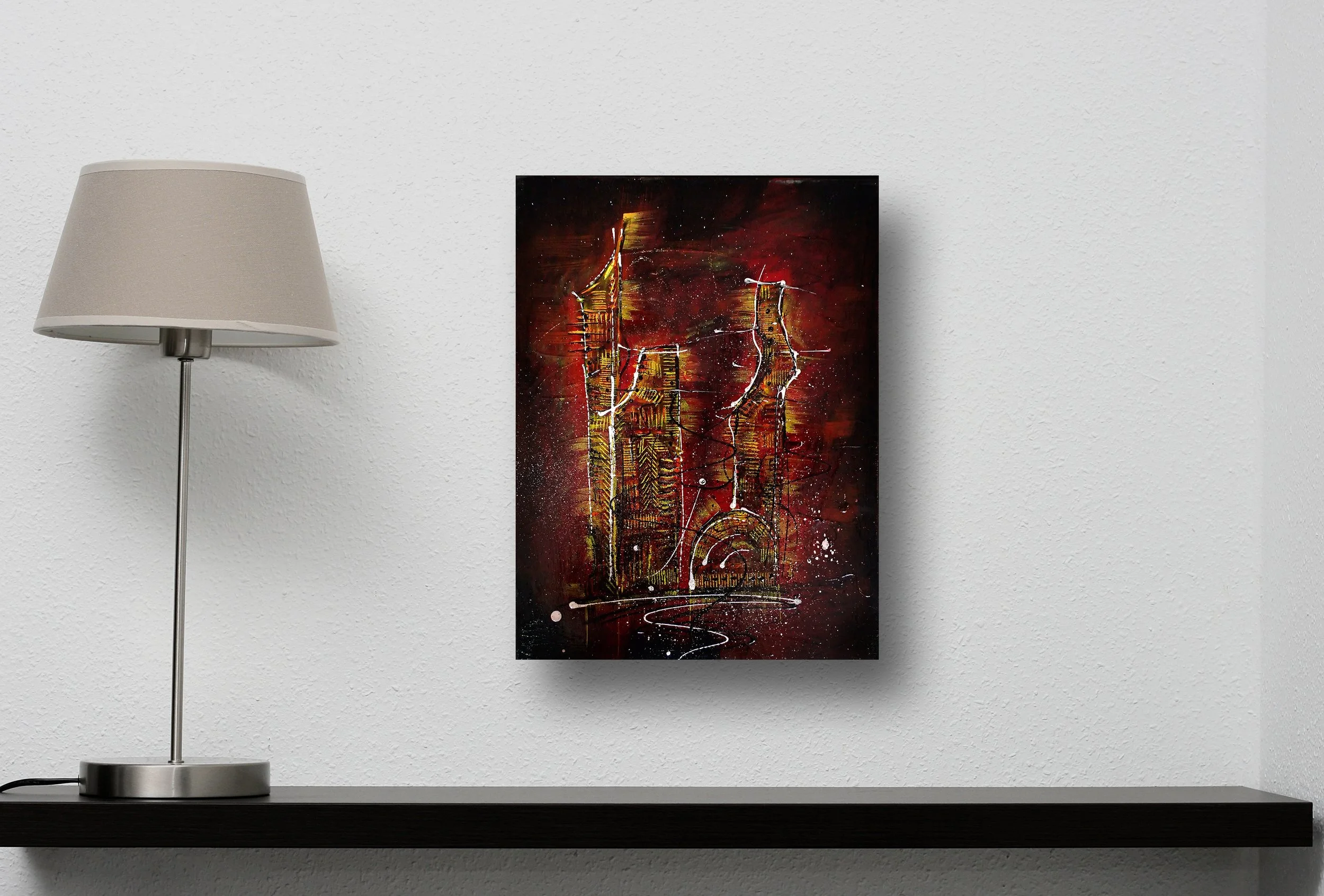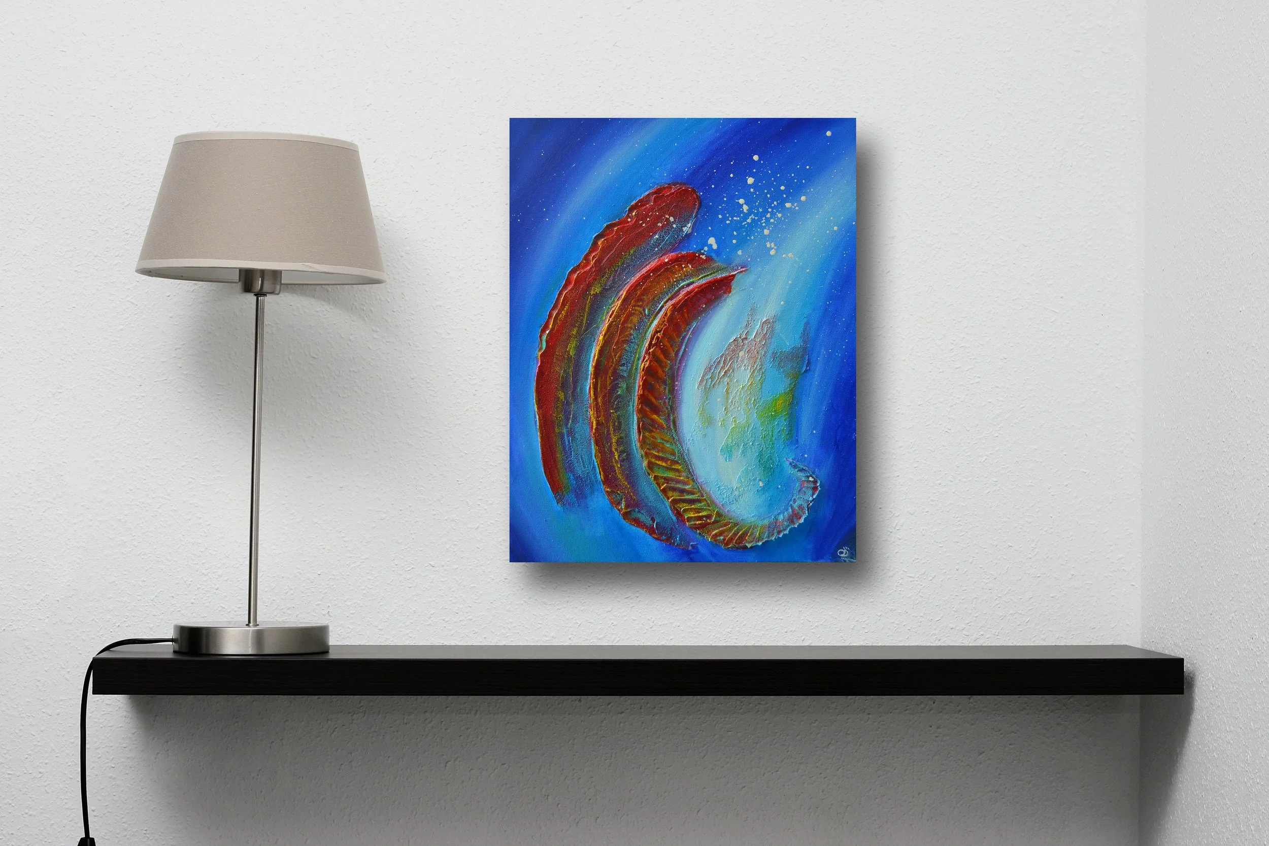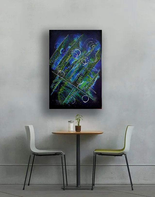 Les toiles uniques sont le fruit de diverses expérimentations artistiques, incluant le grattage de peinture, les tests d’absorption de pâte de modelage, l’utilisation d'outils en caoutchouc, la comparaison de pigments minéraux, l'étampage à l’éponge naturelle, et bien d’autres techniques exploratoires.