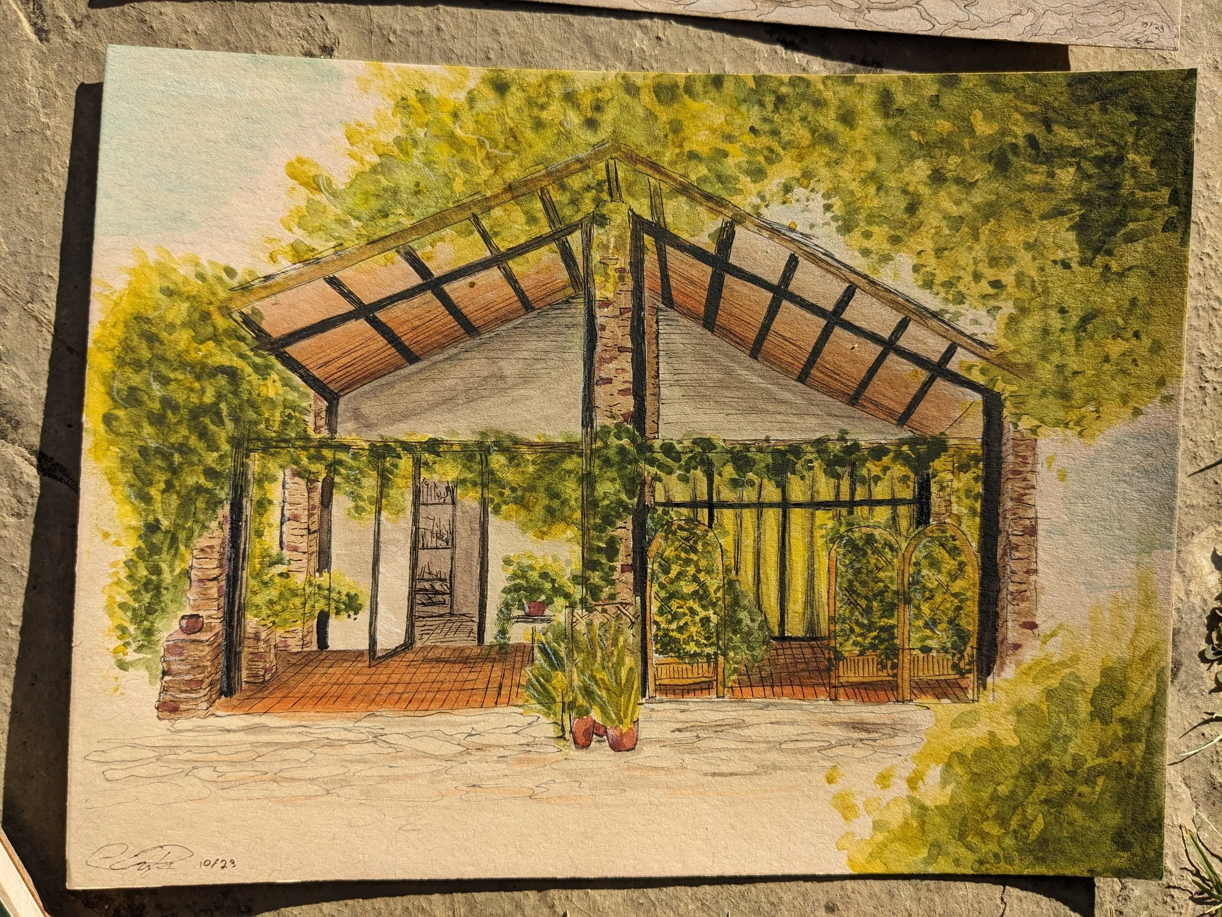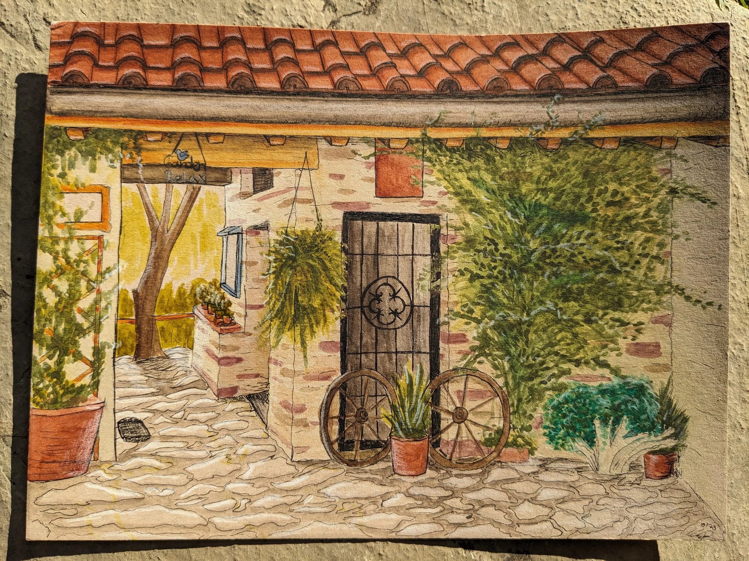 Cette section présente un amalgame de dessins réalisés à la main et numériquement. Les deux premières images sont des reproductions, une manuelle et une numérique, créées dans un cadre scolaire. Les images suivantes, quant à elles, sont des reproductions faites à la main lors de voyages, accompagnées de leurs images de référence, capturant des moments d'inspiration sur place.